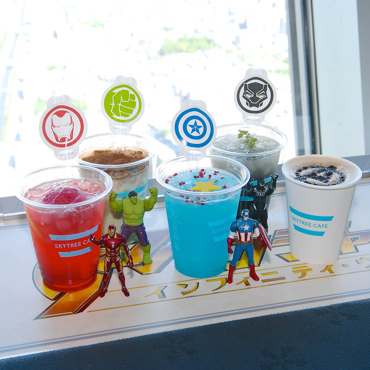 東京スカイツリーの天望デッキ、天望回廊が『アベンジャーズ/インフィニティ・ウォー』一色に染まる特別展示、グッズ、メニューなどが販売されています☆