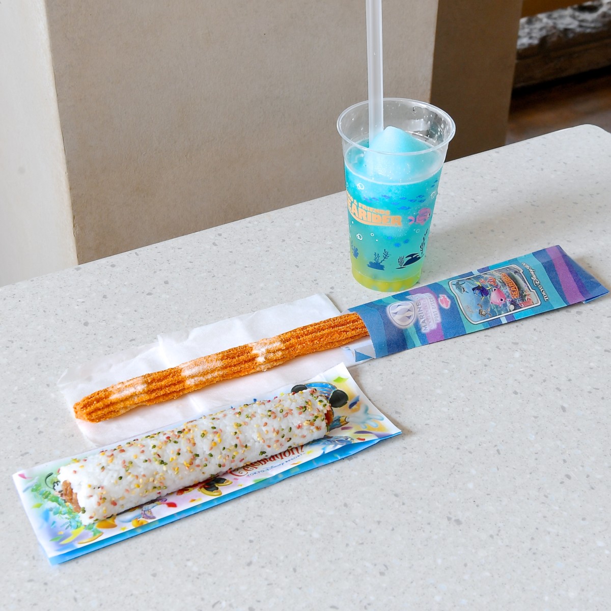 人気だった「ニモ&フレンズ・チュロス(オレンジ)」と「ディープシー(パイナップルスムージー)」の再登場に加え、新作「寿司ロール(シュリンプ&チキンカツ)」も発売されました☆