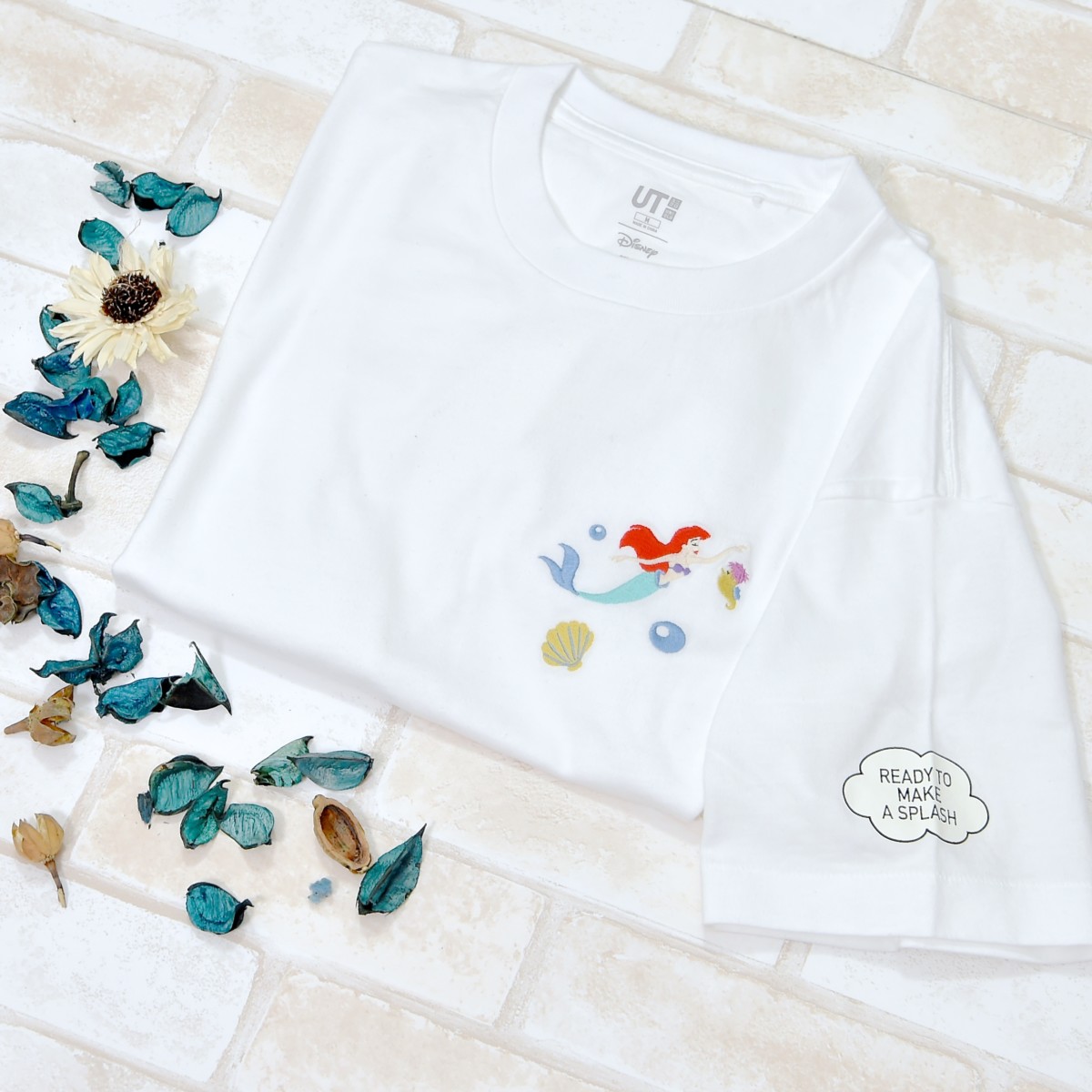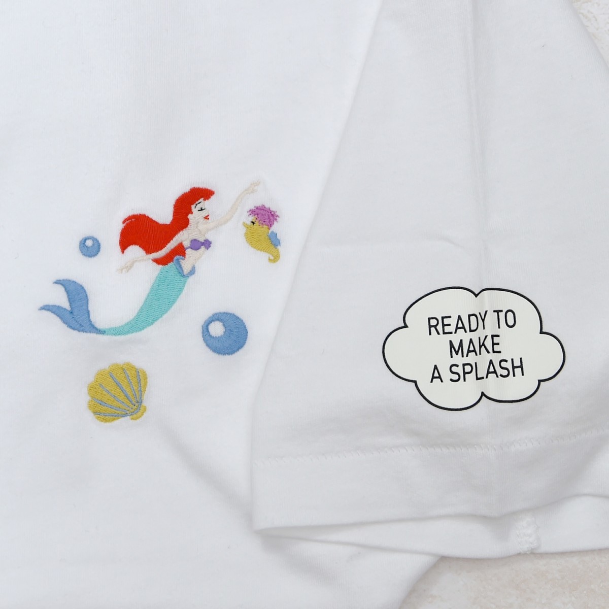 『リトル・マーメイド』のディズニープリンセス「アリエル」が刺繍されたTシャツ。