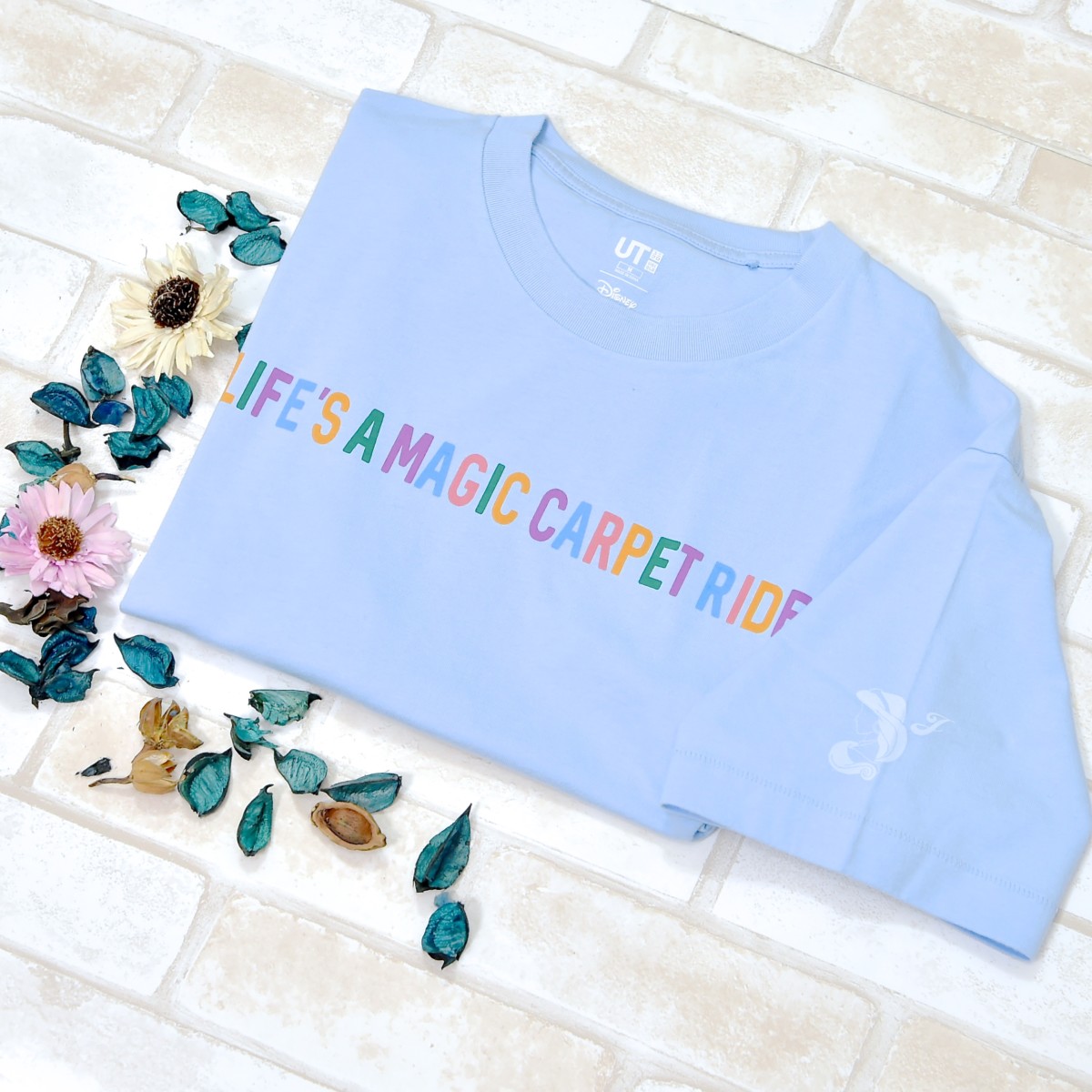 胸元には“LIFE'S LIKE A MAGIC CARPET RIDE"とカラフルな文字で描かれ、袖にジャスミンの横顔シルエットがさりげなくデザインされています☆