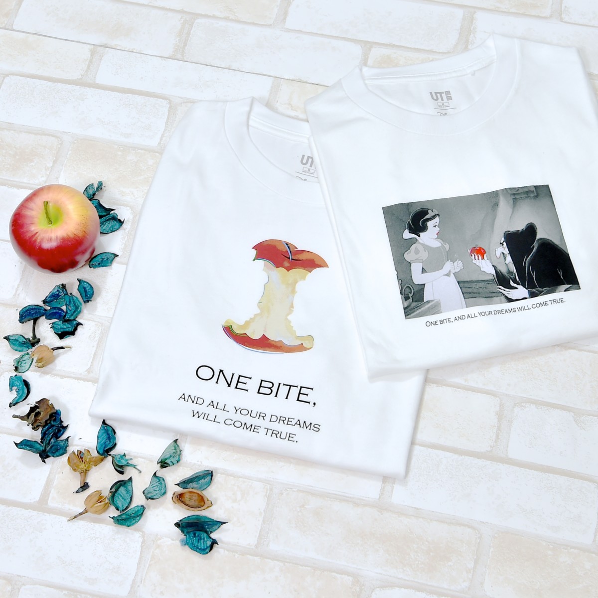 ディズニー映画『白雪姫』のキーアイテムであるリンゴをデザインしたインパクトのあるTシャツ。