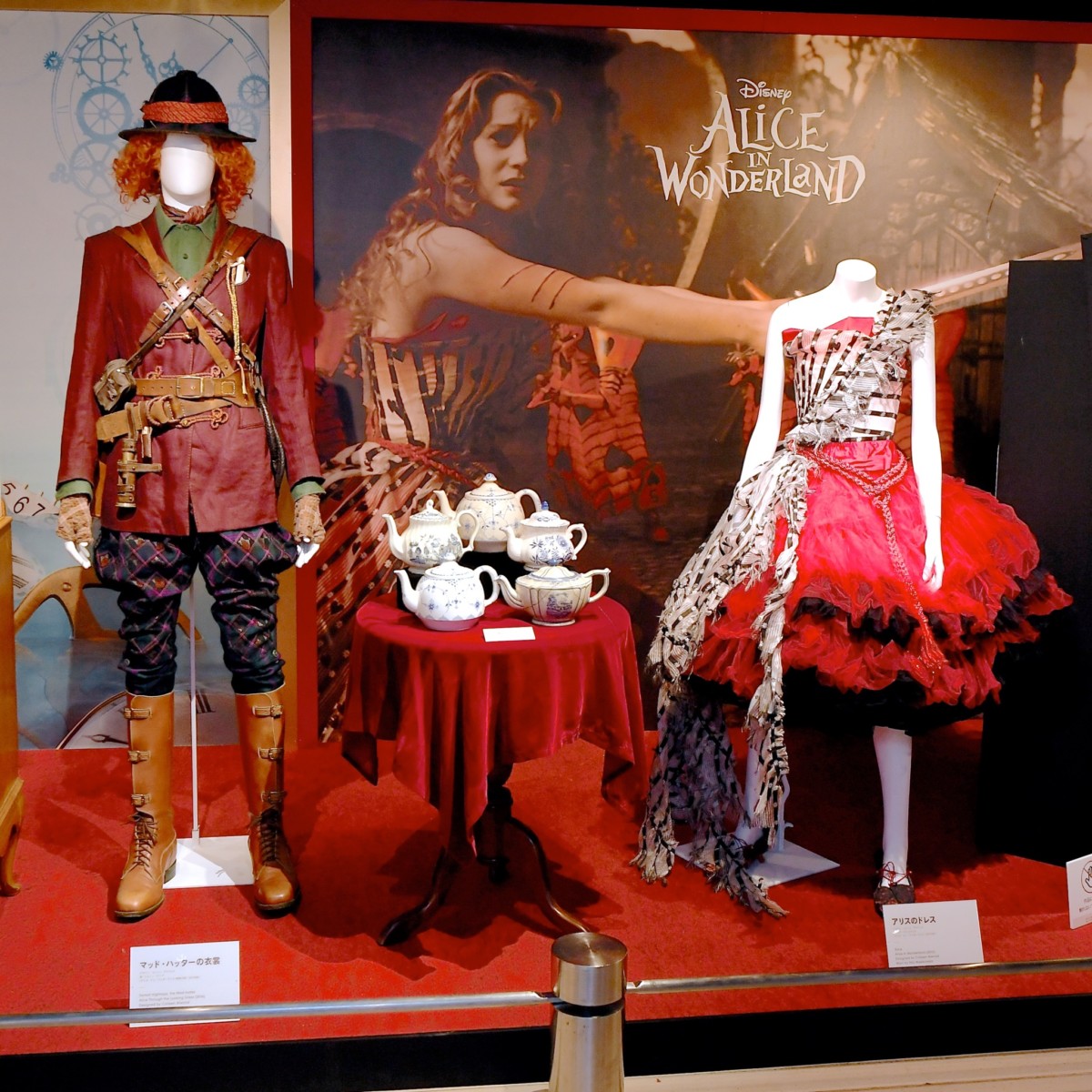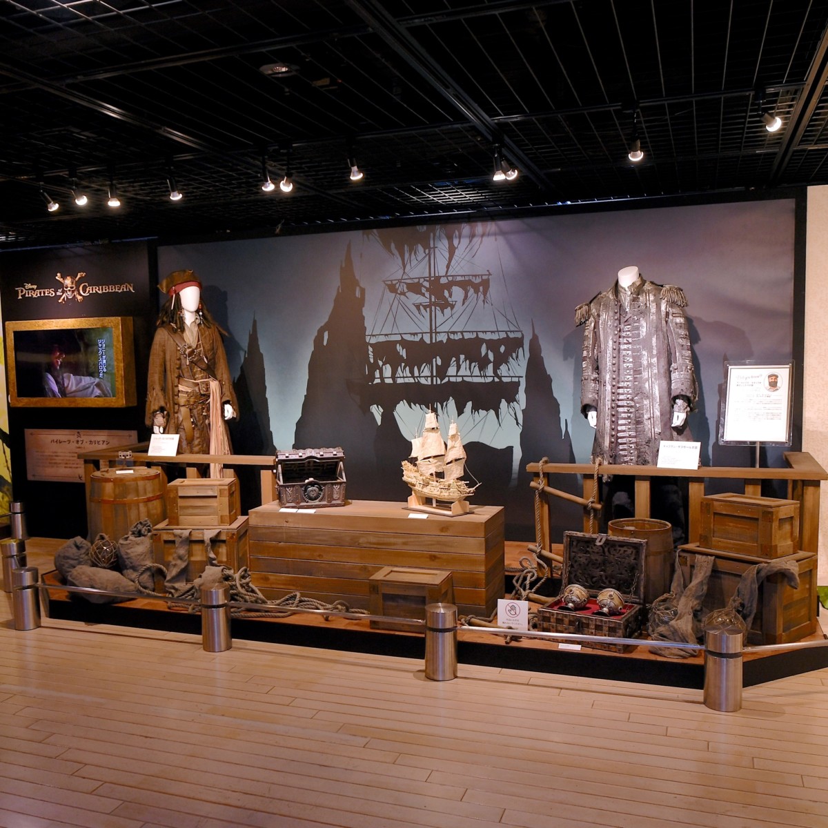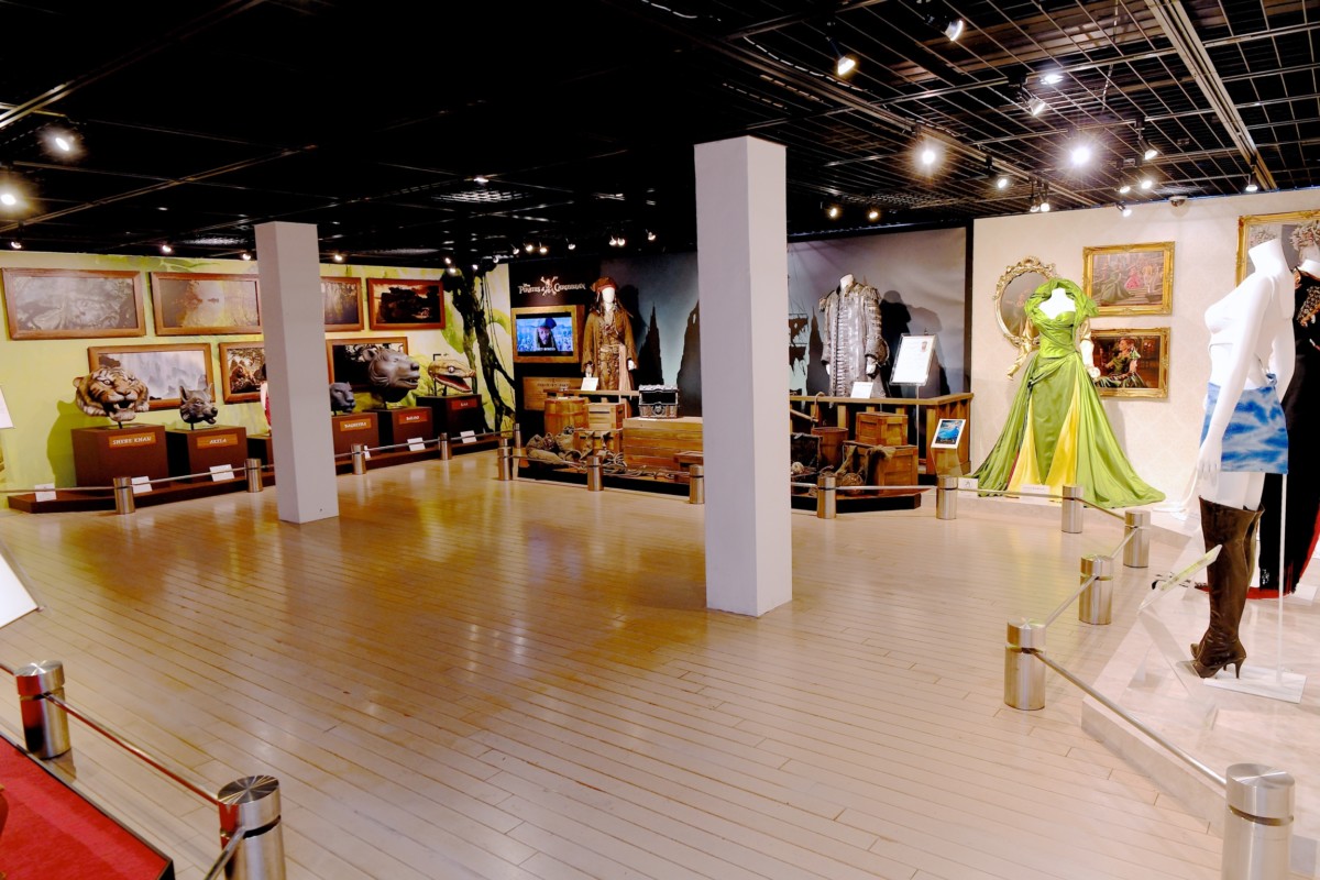 『美女と野獣(2017年)』、『パイレーツ・オブ・カリビアン』、『アリス・イン・ワンダーランド』などの映画コスチューム、小物の展示。