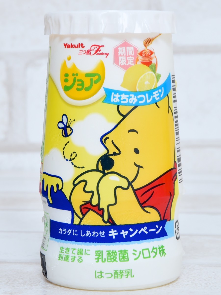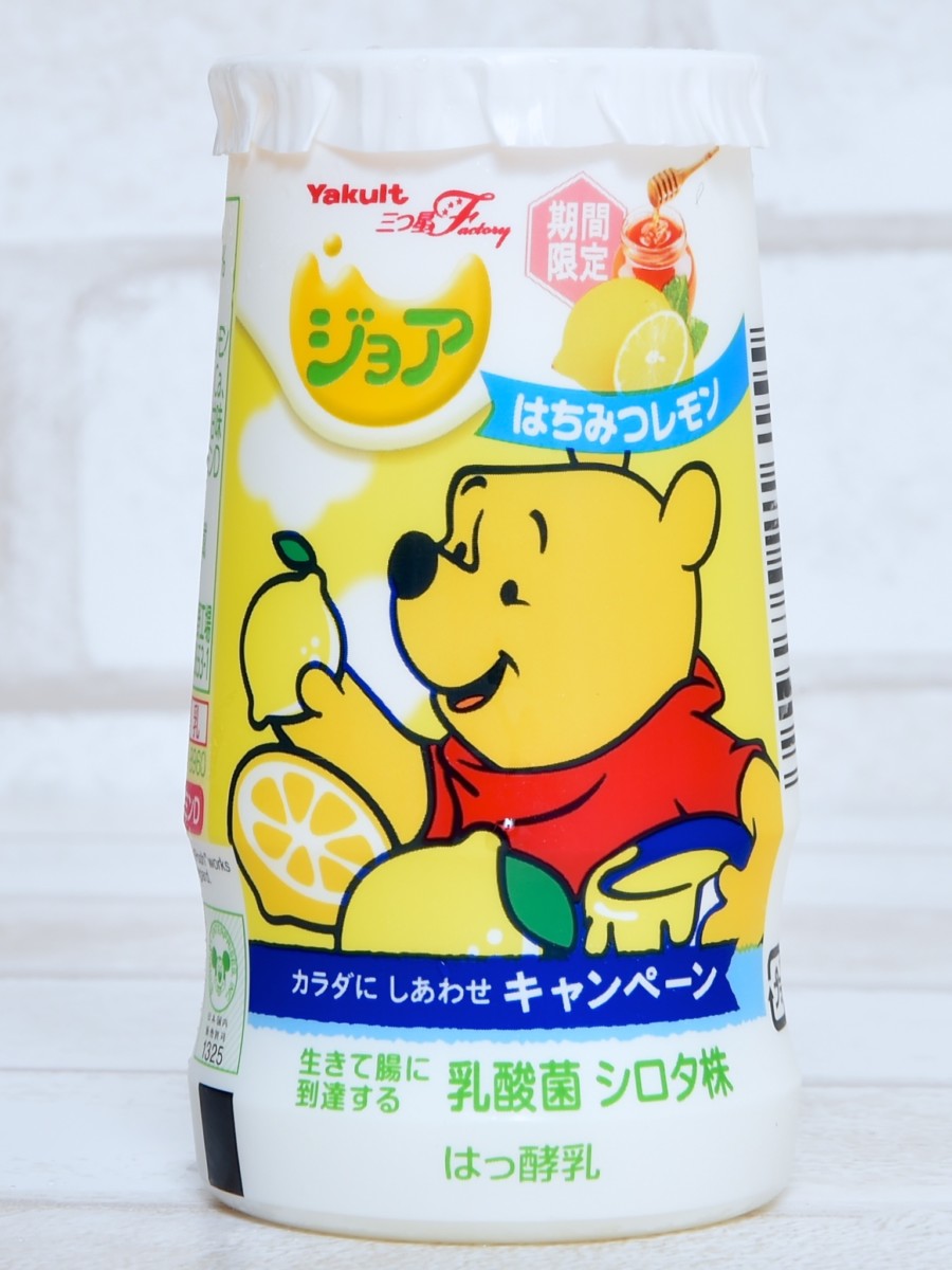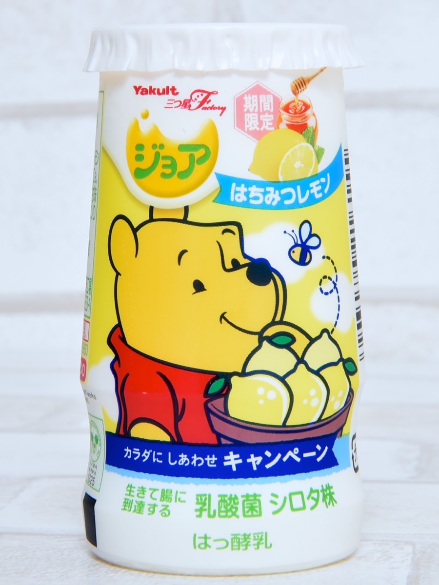 レモンを抱えるくまのプーさん!ヤクルト ディズニー「ジョア はちみつレモン」の紹介でした。