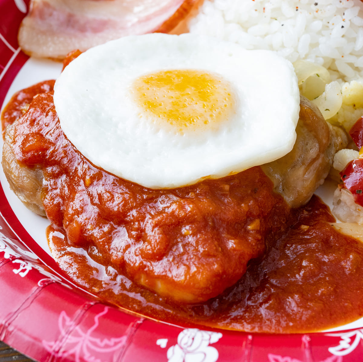 たっぷりのトマトソースや半熟卵に加え、