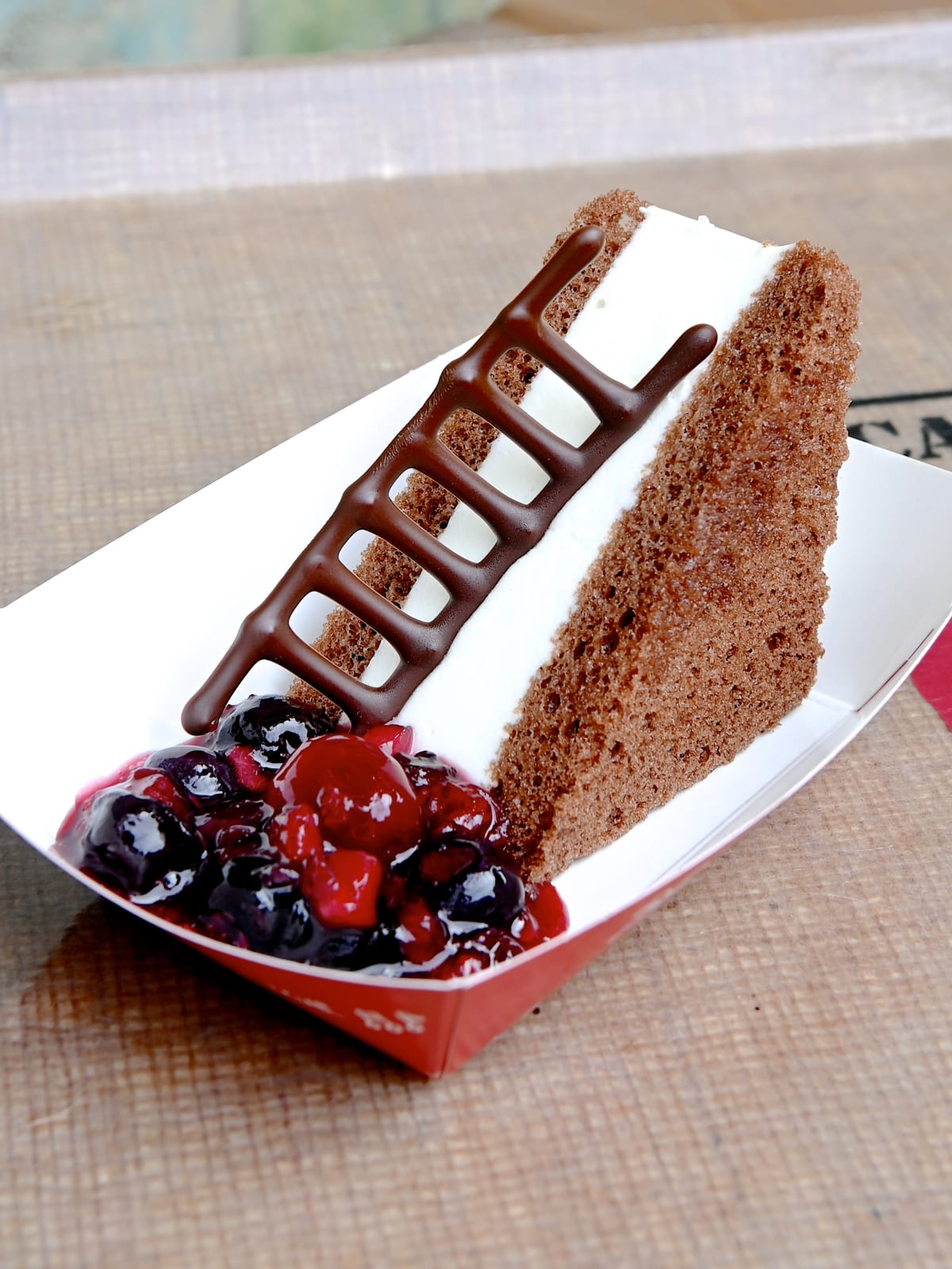 遺跡の採掘場らしい、はしご型のチョコがトッピングされたチーズムースケーキ。
