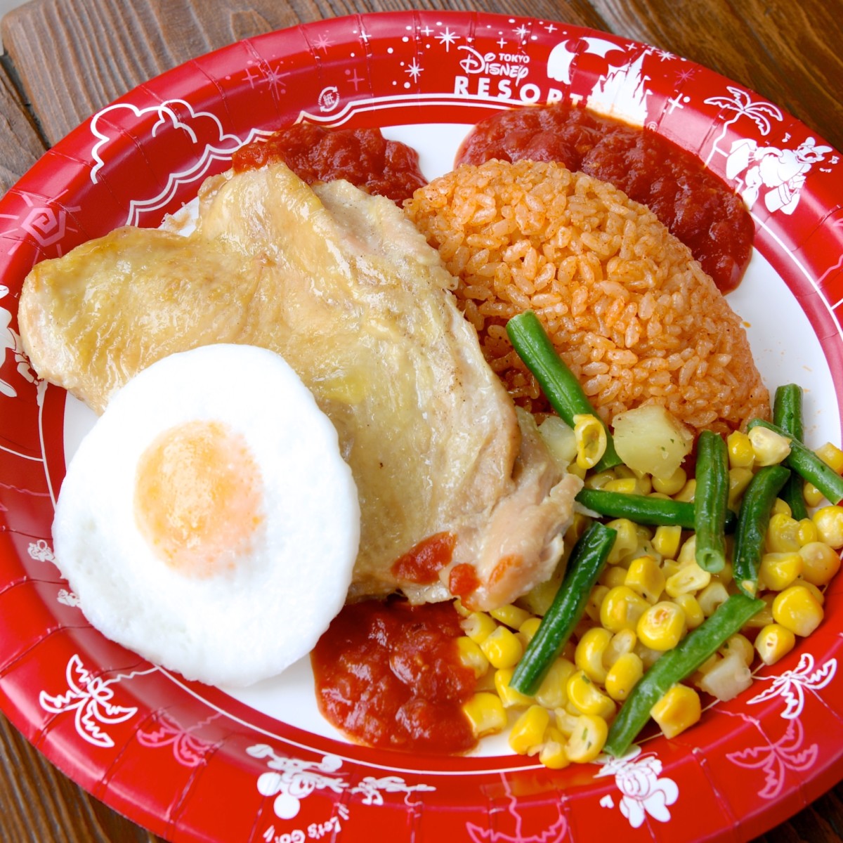 チキンのオーブン焼き、エッグとメキシカンライス添え